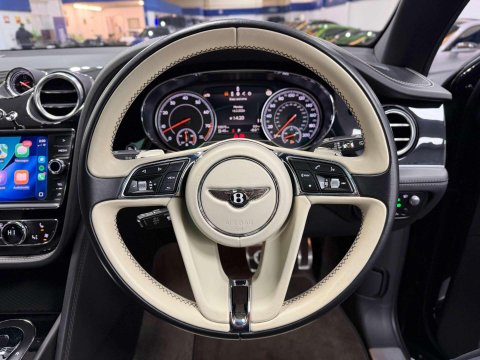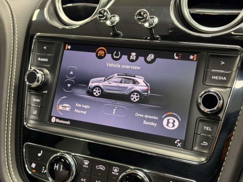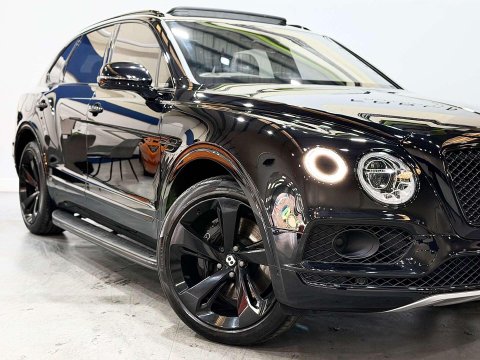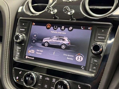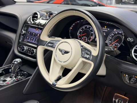BIG SPEC BENTAYGA V8 FINISHED IN ONYX METALLIC BLACK WITH BELUGA AND LINEN INTERIOR / FEATURED IS A BENTLEY SERVICE HISTORY FROM NEW AND IN STUNNING CONDITION / £36,425 OF SPEC WHICH INCLUDES CITY AND TOURING SPECIFICATION / EMBROIDED BENTLEY EMBLEMS TO SEATS / CONTRASTING STEERING WHEEL STITCHING / CONTRAST STITCHING / BODY COLOURED LOWER BODYWORK / DUAL TONE STEERING WHEEL / PIANO BLACK INTERIOR TRIM / 22 ALLOY WHEELS IN GLOSS BLACK / BENTLEY SIDE STEPS WITH CARBON FIBRE INLAYS / ROOF RAILS / FUL MULLINER EXTERIOR FACTORY BLACK PACKAGE / VENEERED CENTRE FASCIA PANEL / REMOTE CONTROLLED GARAGE DOOR OPENER / COLOUR SPECIFICATION / BENTLEY DYNAMIC RIDE / PRIVACY GLAZING SPECIFICATION / FULL TILT AND SLIDE PANORAMIC GLASS SUNROOF AND SURROUND VIEW CAMERA SYSTEM.